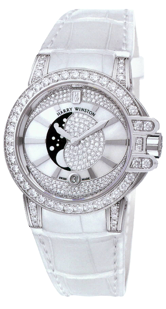 Ladies Harry Winston oceqmp36ww009 Ocean Lady Moon Phase 36mm Watch