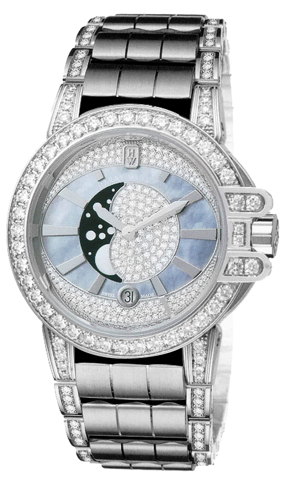Ladies Harry Winston oceqmp36ww012 Ocean Lady Moon Phase 36mm Watch