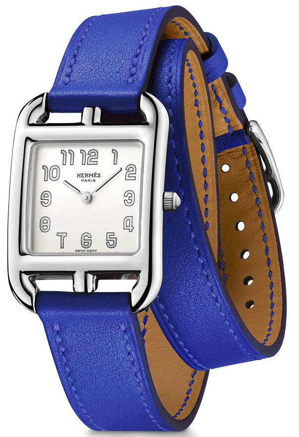 • Smooth electric blue calfskin leather "double tour" strap which winds around the wrist two times.