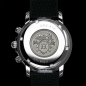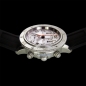 • Opaline silvered sunray dial with a contrasting circular center and light chronograph subdials.