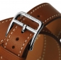 • Brown natural Barenia calfskin leather "double tour" strap with contrasting white stitching and a tang buckle. The strap winds around the wrist two times.