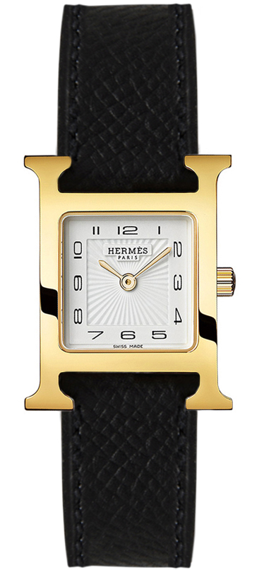 • Gold-plated case back adorned with the Hermes logo.