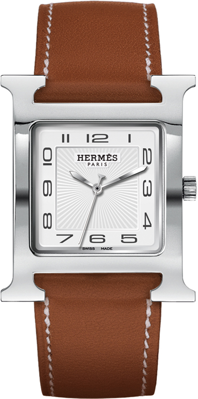 • Solid steel case back adorned with the Hermes logo.