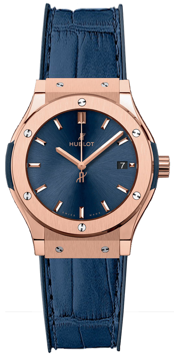 • Polished 18kt rose gold crown engraved with the Hublot logo.