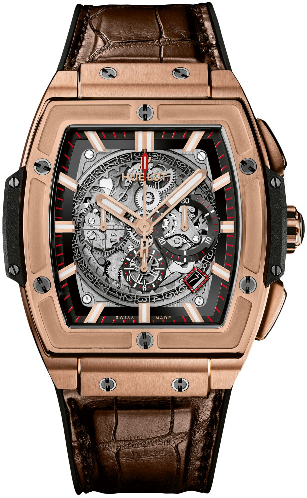 • Brushed & polished 18kt King Gold crown & chrono buttons with black inserts.