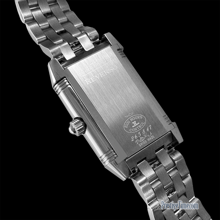 Stainless steel case and bracelet, Silver dial with florale painted numbers, Reversible case set with 28 diamonds F-G Color, VVS Quality - Top Wesselton, Reverse side in Stainless steel.