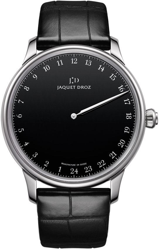 • Jaquet Droz Caliber 24JD53, beats at 28,800 vph, contains 28 Jewels & has an approximate power reserve of 68 hours.