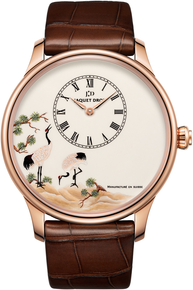 Mens Jaquet Droz j005033226 WHITE CRANES Les Ateliers d'Art Petite Heure Minute Enamel Painting 43mm Watch