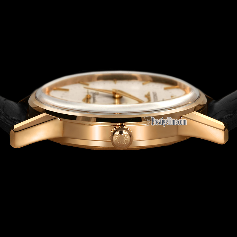 • 18KT Rose gold case, Black leather strap.