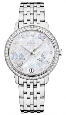 • White mother of pearl dial decorated with a beautiful and unique butterfly pattern