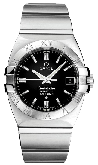 Stainless steel case and bracelet, Black dial, Domed anti reflective sapphire crystal, Displays date at 3, Perpetual calendar adjusts for longer and shorter months.