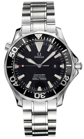 Black, Luminous hour markes and hands, displays date at 3, with a helium escape valve at 10.