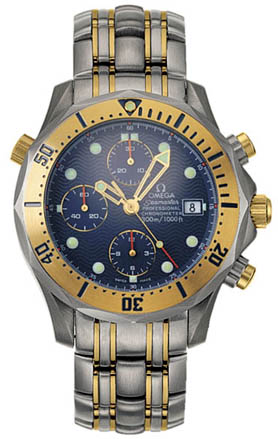 Both case and bracelet are Titanium and 18KT Yellow gold. Gold unidirectional turning bezel, sapphire crystal. Luminous hour markes and hands, displays date at 3, helium escape valve at 10. Water resistant to 300 meters/1000 ft. Mens size 39.3mm. Chronograph functions, Certified Chronometer. Out Of Stock - Please allow 2 weeks for delivery.