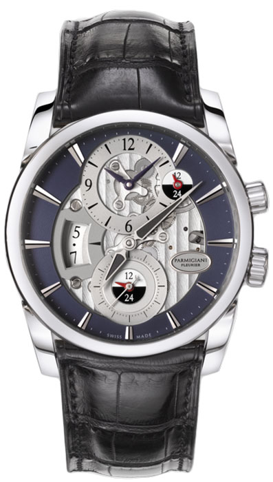 • Parmigiani Caliber pf337, beats at 28,800 vph, composed out of 316 parts, contains 38 Jewels & has an approximate power reserve of 50 hours.