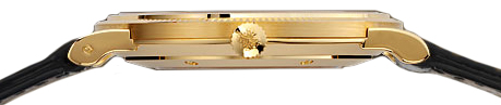 • White lacquered dial with painted black Roman Numeral Hour markers.
