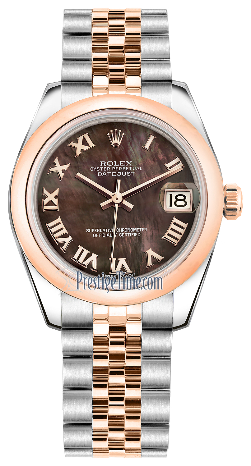 Ladies Rolex 178241 Black MOP Roman Jubilee Datejust 31mm Stainless Steel and Rose Gold Watch
