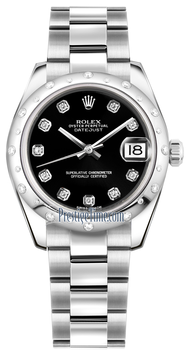 Ladies Rolex 178344 Black Diamond Oyster Datejust 31mm Stainless Steel Watch