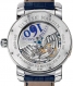 • Blue Dial with Linear Cotes de Geneve highlights. Applied 18kt White Gold Arabic Numbers.