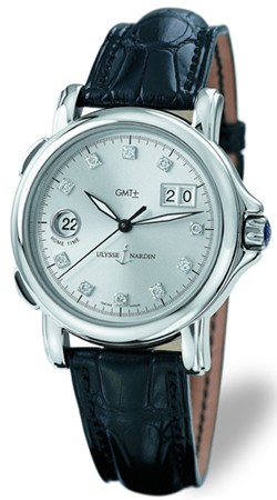 Rhodium Dial set with 10 Diamond hour indicators, Automatic Movement, Big Date Diplayed at the 2 o'clock position, Second Time Zone at the 9 o'clock postion, Luminous Hands & Hour Markers.