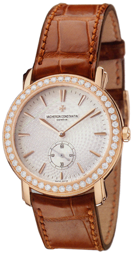 Bezel set with Top Quality Diamonds (aprox total carat weight 1.05ct), Silver Textured Dial, Gold Hands & Stick Hour Markers, Seconds Hand Subdial at the 6 o'clock position.