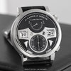 Condition: This watch is excellent pristine near-new condition. The watch came back from a complete factory service (Germany) in late January 2025. As part of the service the watch was completely overhauled, polished/refinished by Lange & a fitted with brand new original strap. The watch has not be worn since it has been returned from service. We would be comfortable rating this watch in 98%+ condition. Delivered in its original box with all original papers. A copy of the factory service receipt & a factory branded service box is included.