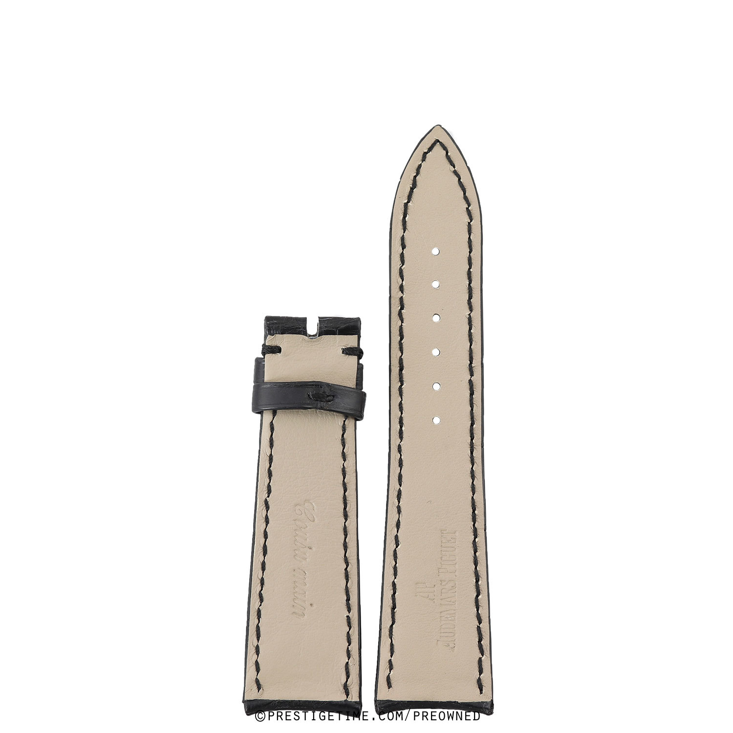 Genuine Audemars Piguet black alligator leather strap with curved edges.