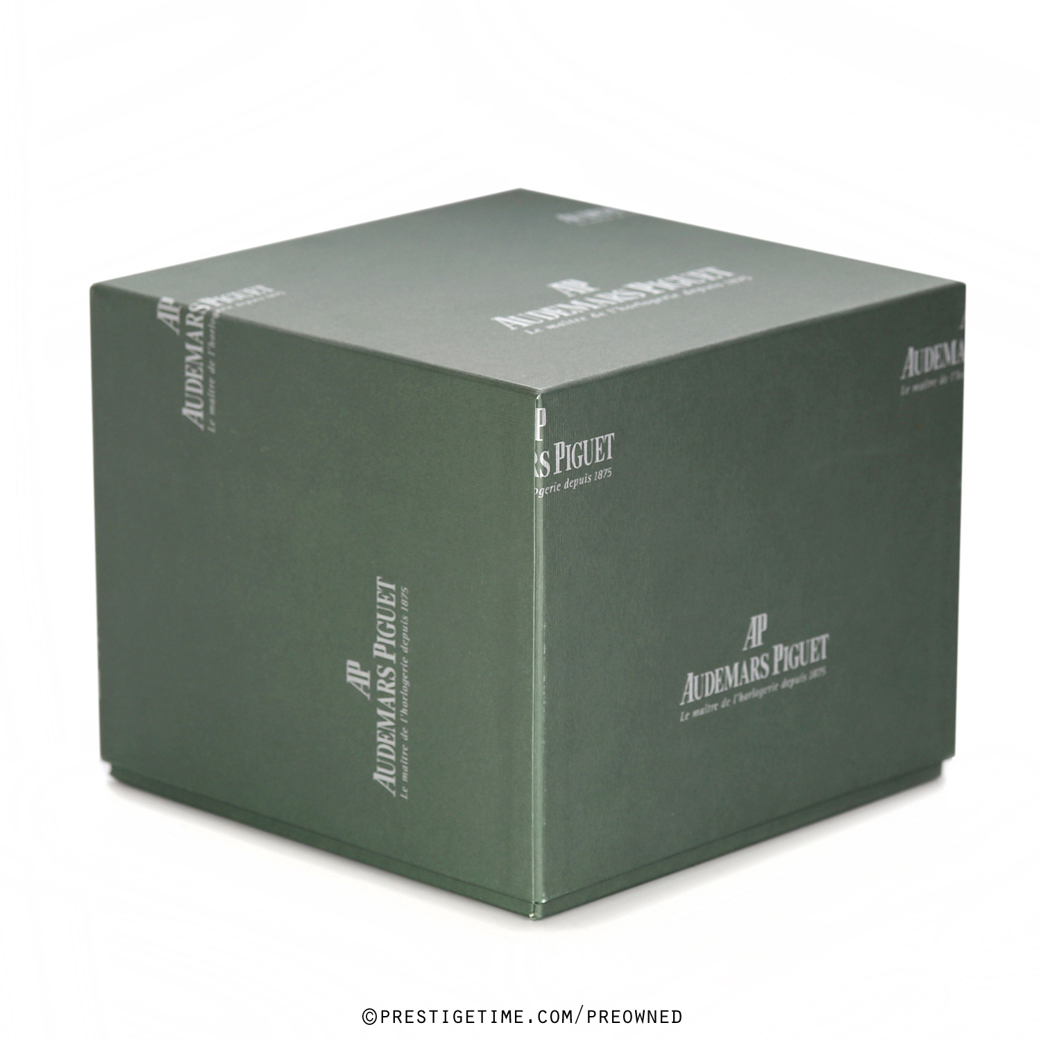 Audemars Piguet box set. Green wood inner box with a high-gloss finished & polished brass hardware. Outer green cardboard box. Complete set in perfect unused condition.