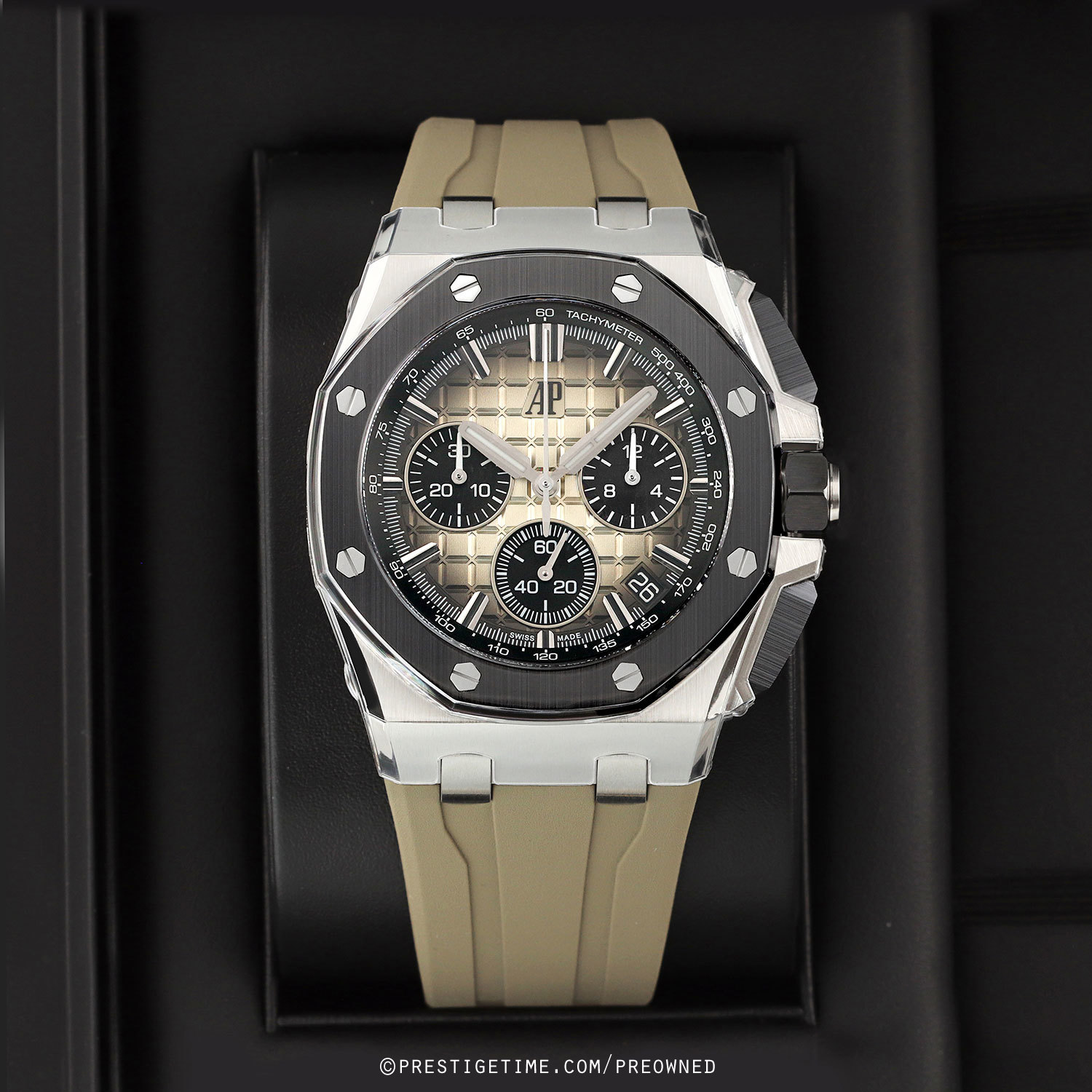 Condition: This watch is completely unworn & in brand new condition. The watch has the original factory protective hard-plastic clamshell cover protecting the case. Delivered in its original box with all papers. The AP factory 2 year warranty can be extended to 5 years with registration on the manufacturers website.