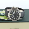 Case: Brushed & polished titanium case. Brushed & polished titanium bezel featuring a 60 minutes diving scale & luminous starting dot. Patented crown protection system with push-button swivel bar. Two-tiered matte black dial. Black & white hands. Printed minutes/seconds track. Day of the week window at 3 o'clock. Date window between 4 & 5 o'clock.