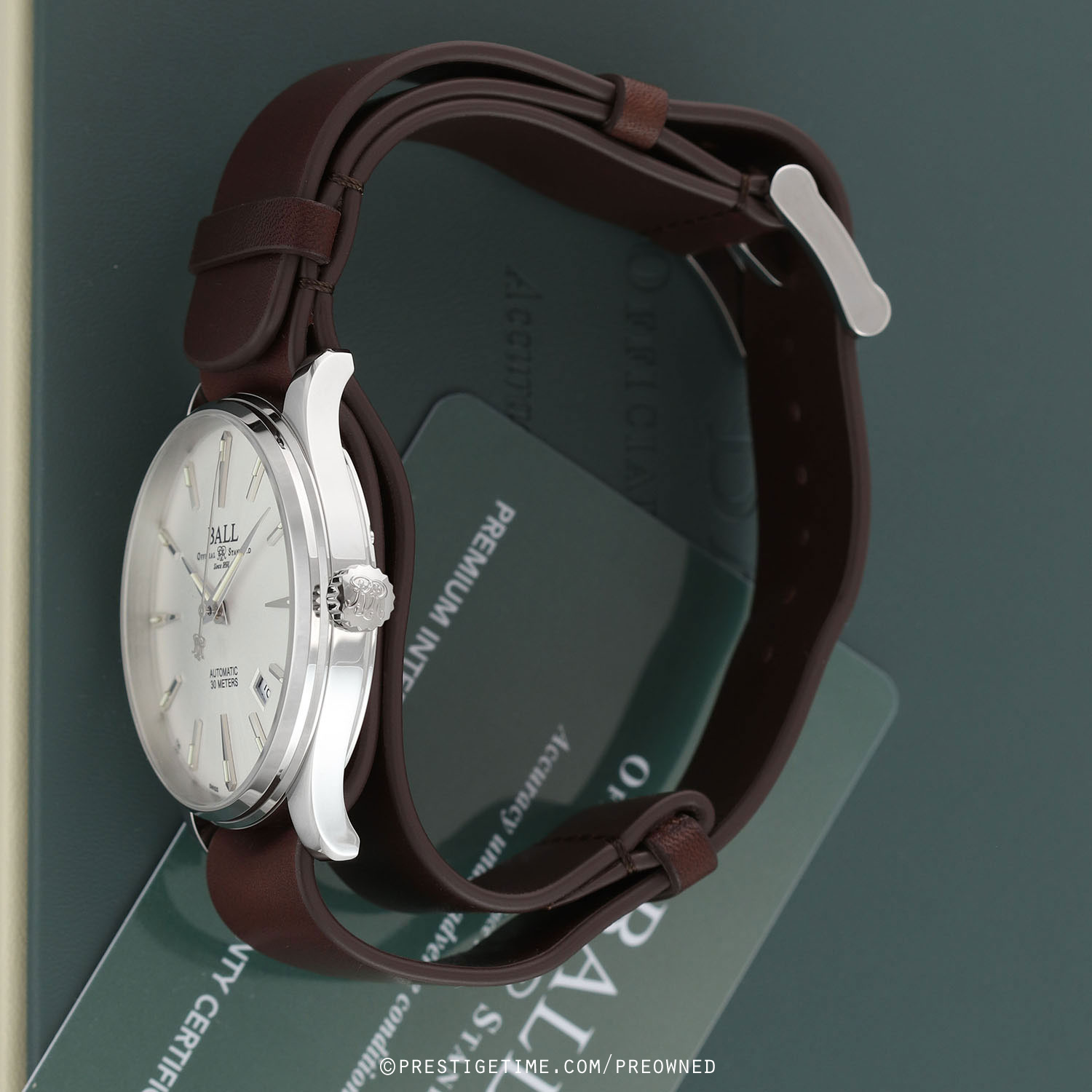 Strap: Fitted on its original BALL Watch NATO style brown calfskin leather strap with a stainless steel tang buckle. The strap is brand new & unworn with its full wear lifespan remaining.