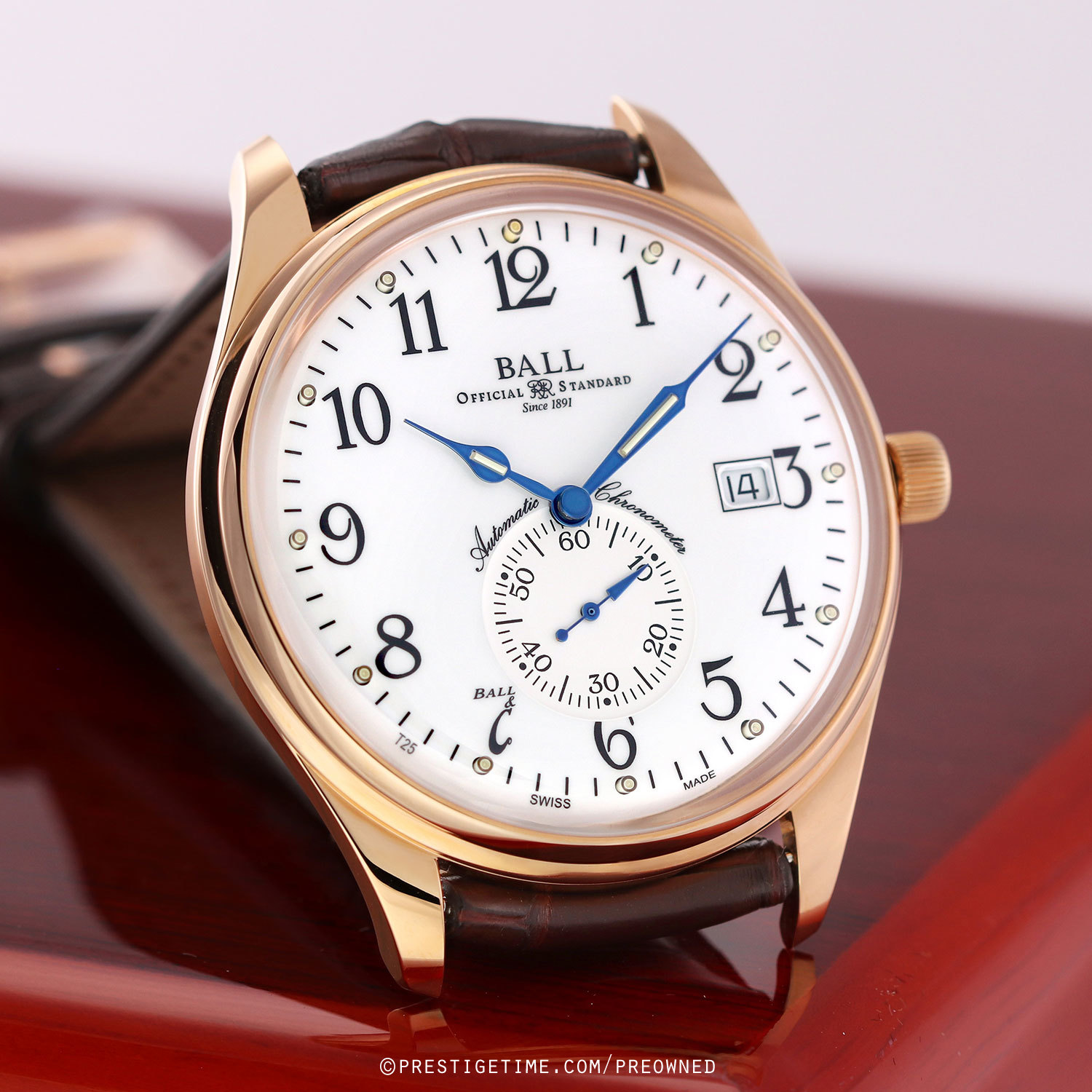 Strap: Fitted on its original BALL brown alligator leather strap with a rose-gold PVD coated stainless steel tang buckle. The strap is brand new in unworn condition with its full wear lifespan remaining.