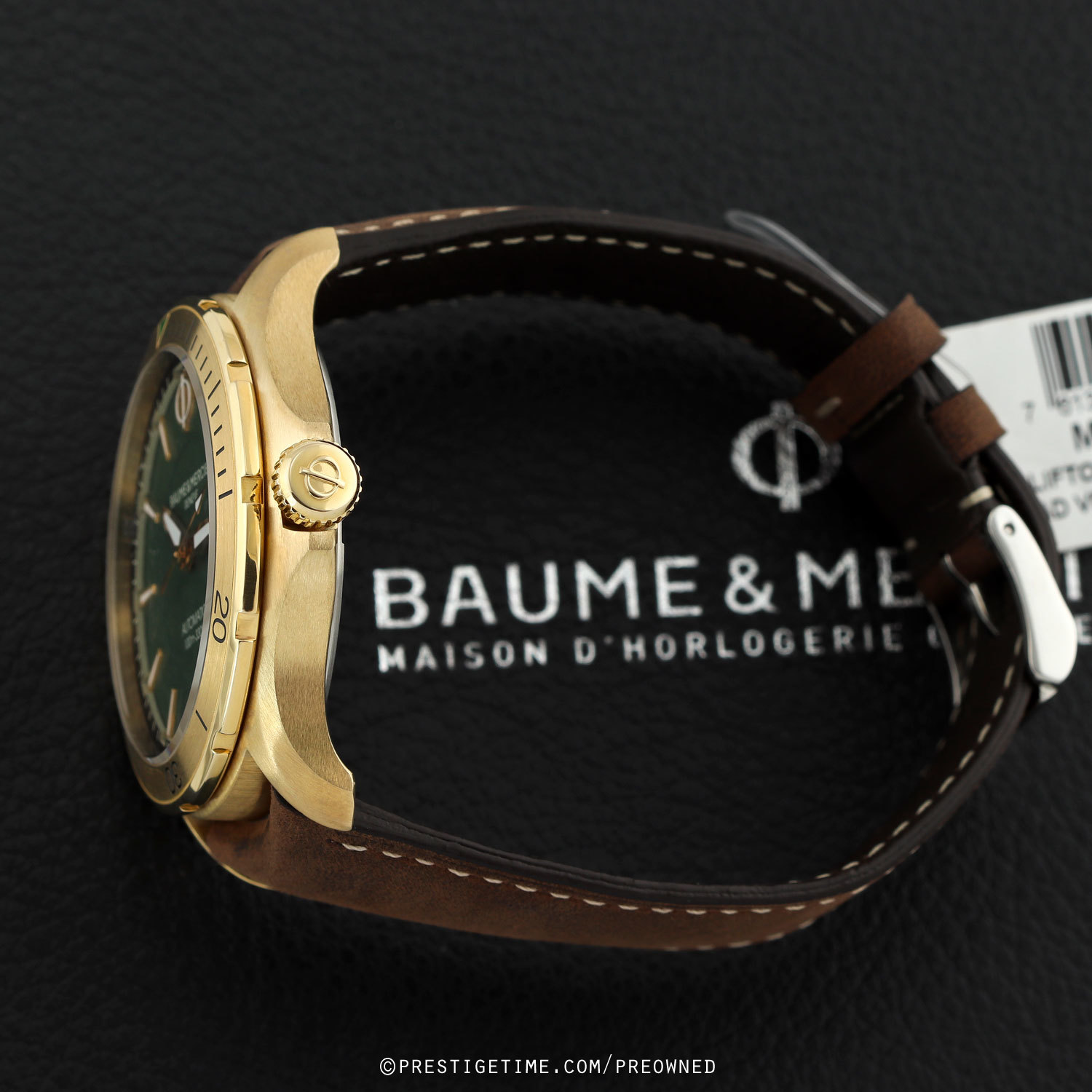 - Fitted on a suede like brown calfskin strap with a stainless steel tang buckle. This strap is unworn, but has very light handling-wear. We would rate this strap as in 98% condition.