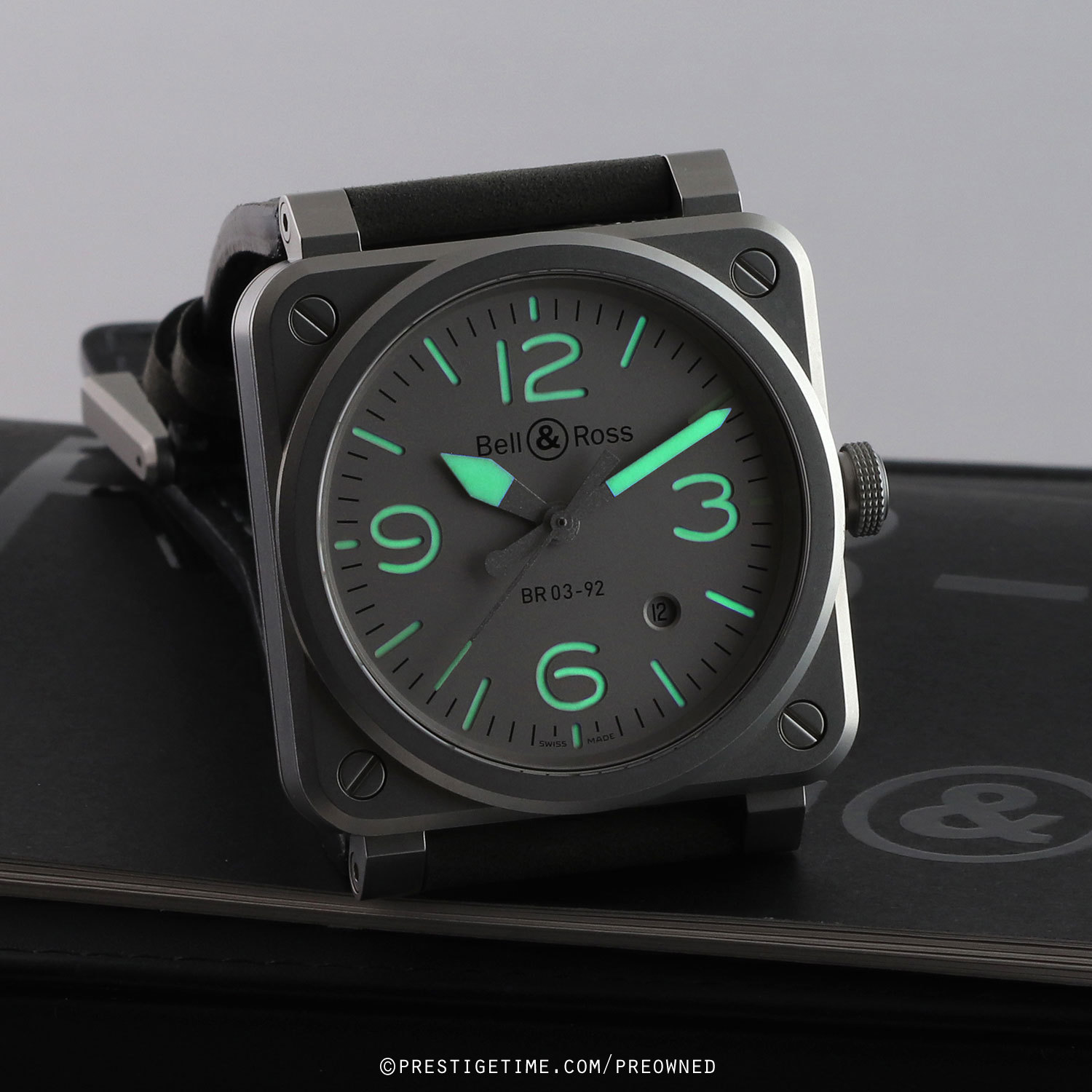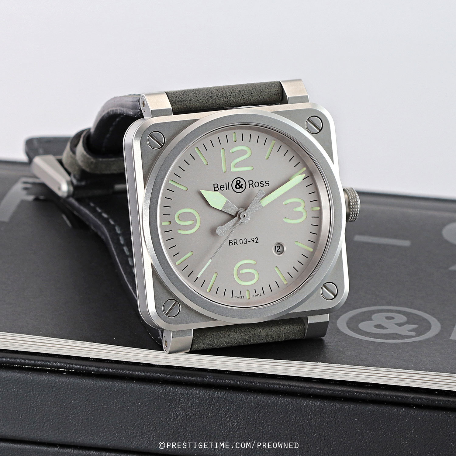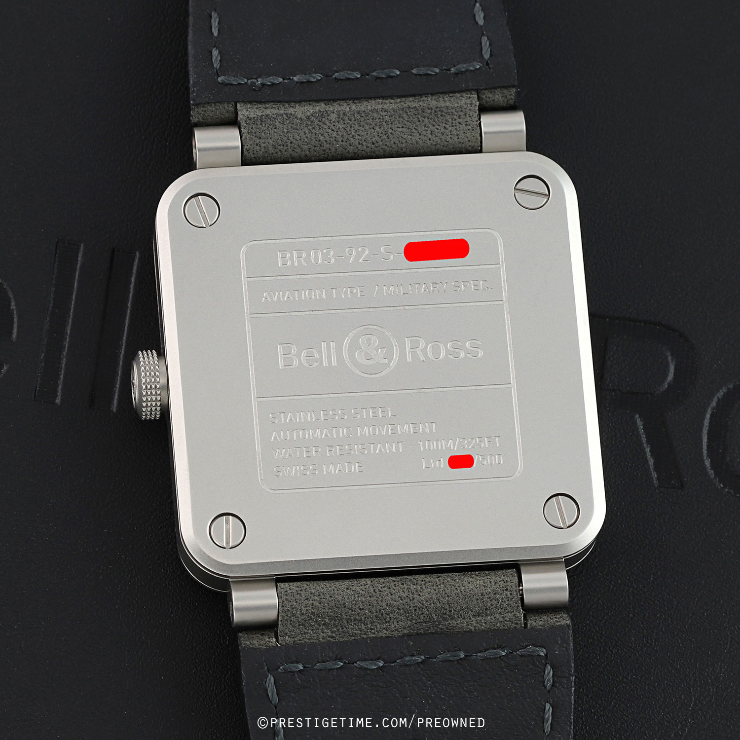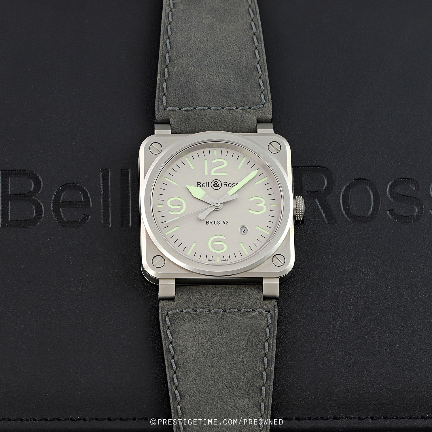 - Fitted on its original Bell & Ross grey raw-hide calfskin leather strap with a micro-blasted finished stainless steel tang buckle. This strap is in excellent, near new condition with the majority of its wear lifespan remaining. We would be comfortable rating the strap as in 95%+ condition.