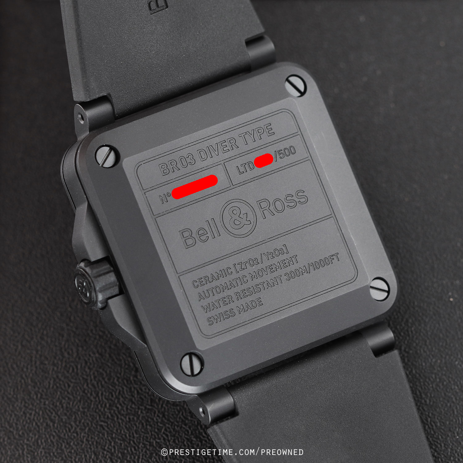Movement: Powered by a Bell & Ross calibre BR-CAL.302-1 (base SW300-1), beats at 28,800 vph (4Hz), 25 jewels with a power reserve of +/- 54 hours (2+ days)