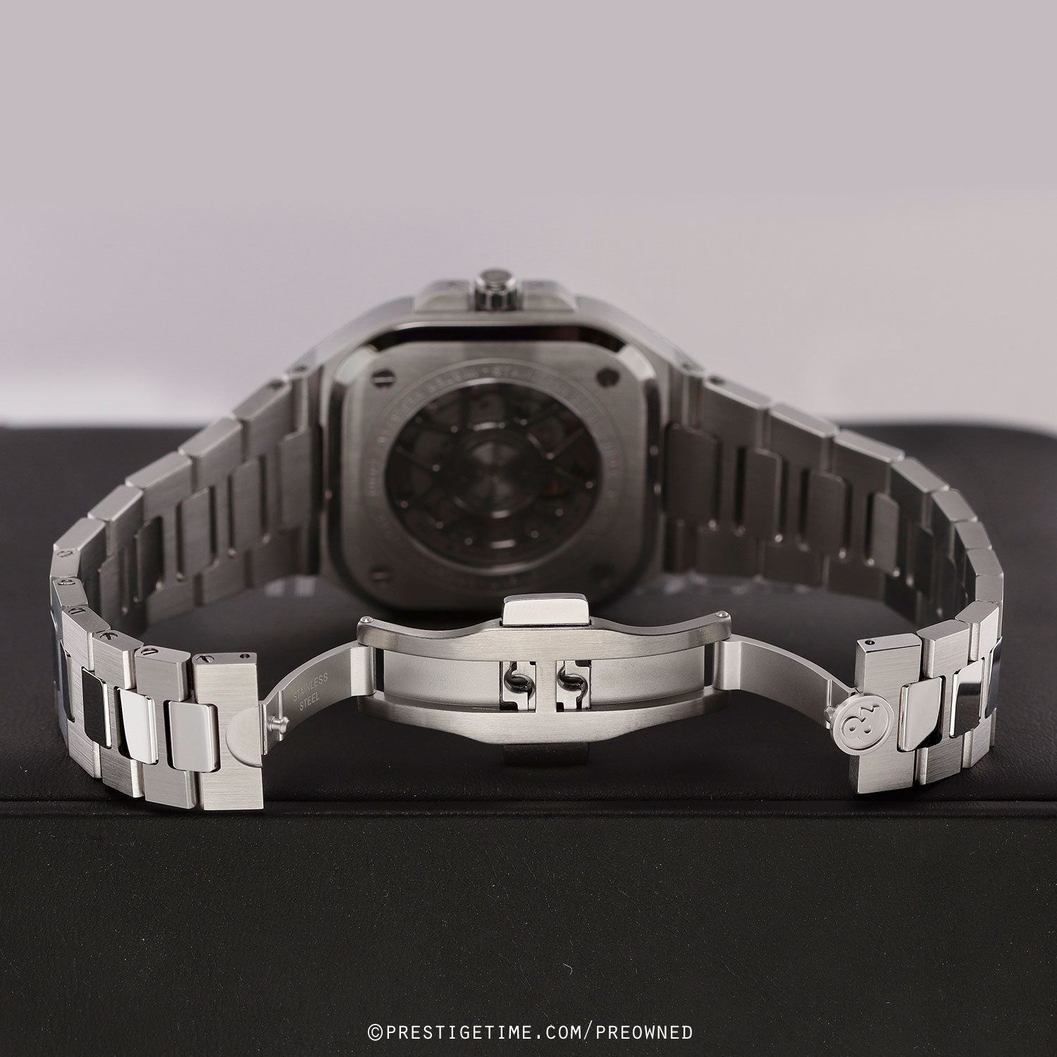 - Fitted on its original brushed & polished stainless steel; bracelet with an push-button deployant clasp. The bracelet is fully linked & will fit up to a 8" wrist.