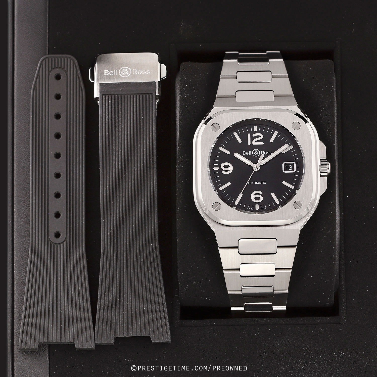 - Delivered with an additional Bell & Ross original black rubber strap with a stainless steel push-button deployant buckle. The strap is excellent near-new condition with its full wear lifespan remaining. We would be comfortable rating this strap as in 98% condition.