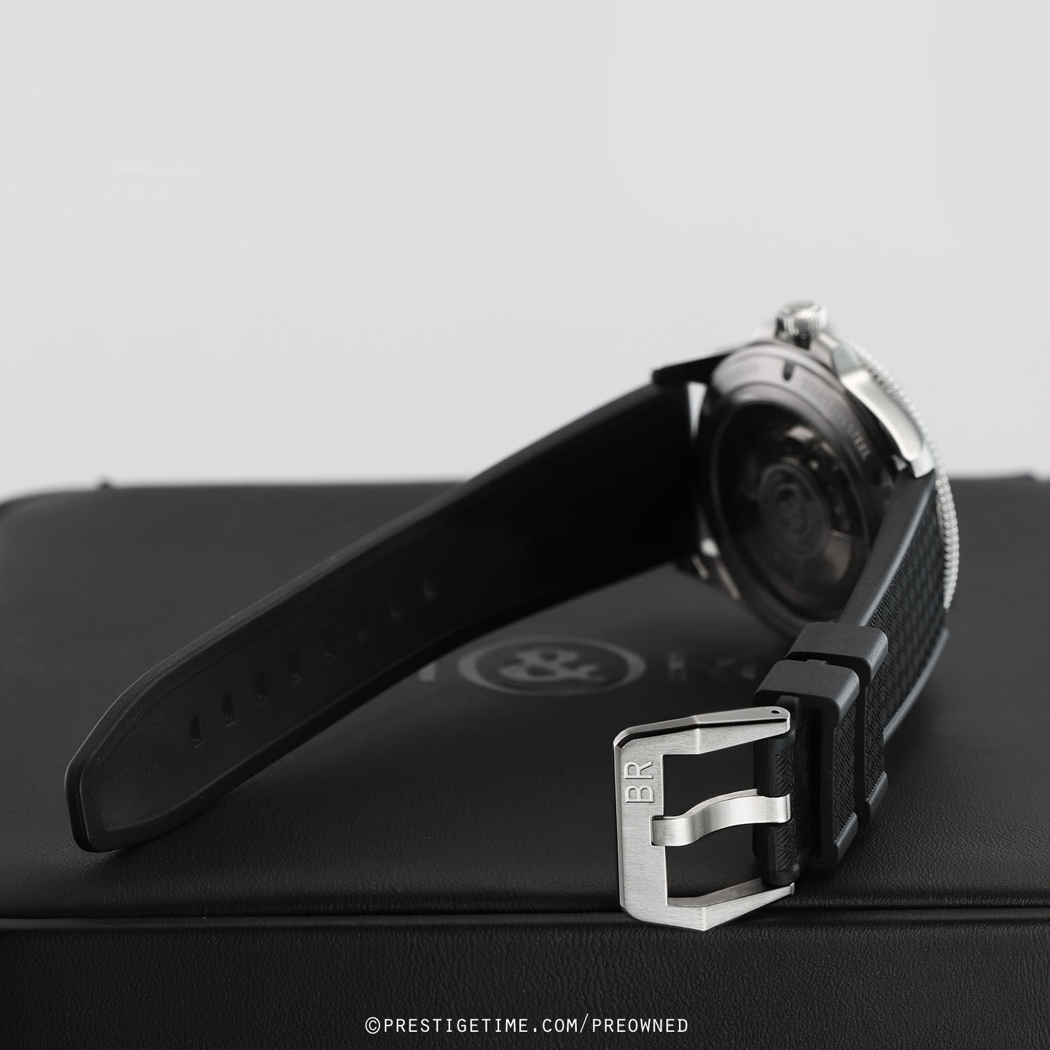 - Fitted on its original Bell & Ross black rubber strap with a stainless steel tang clasp. The strap is in excellent new new condition with the vast majority of its wear lifespan remaining.