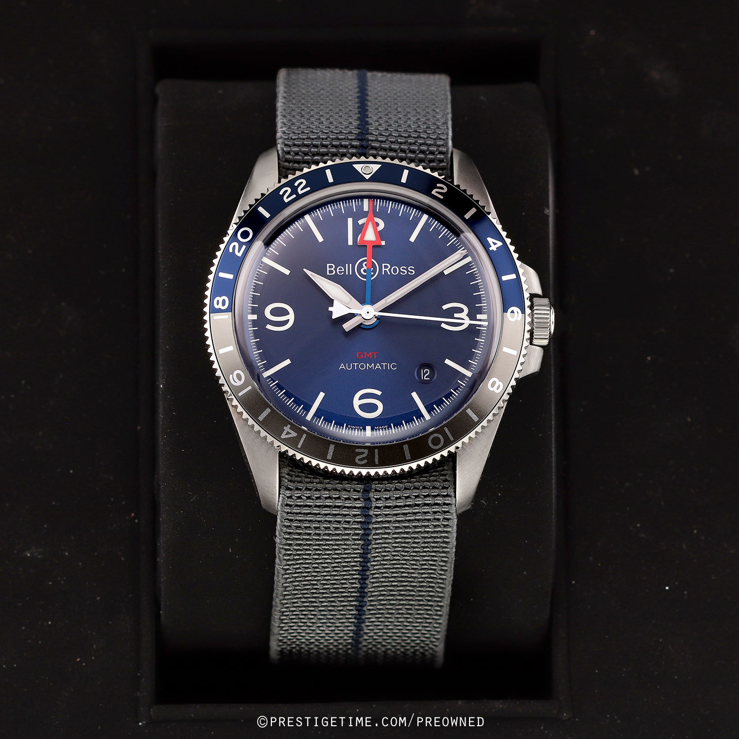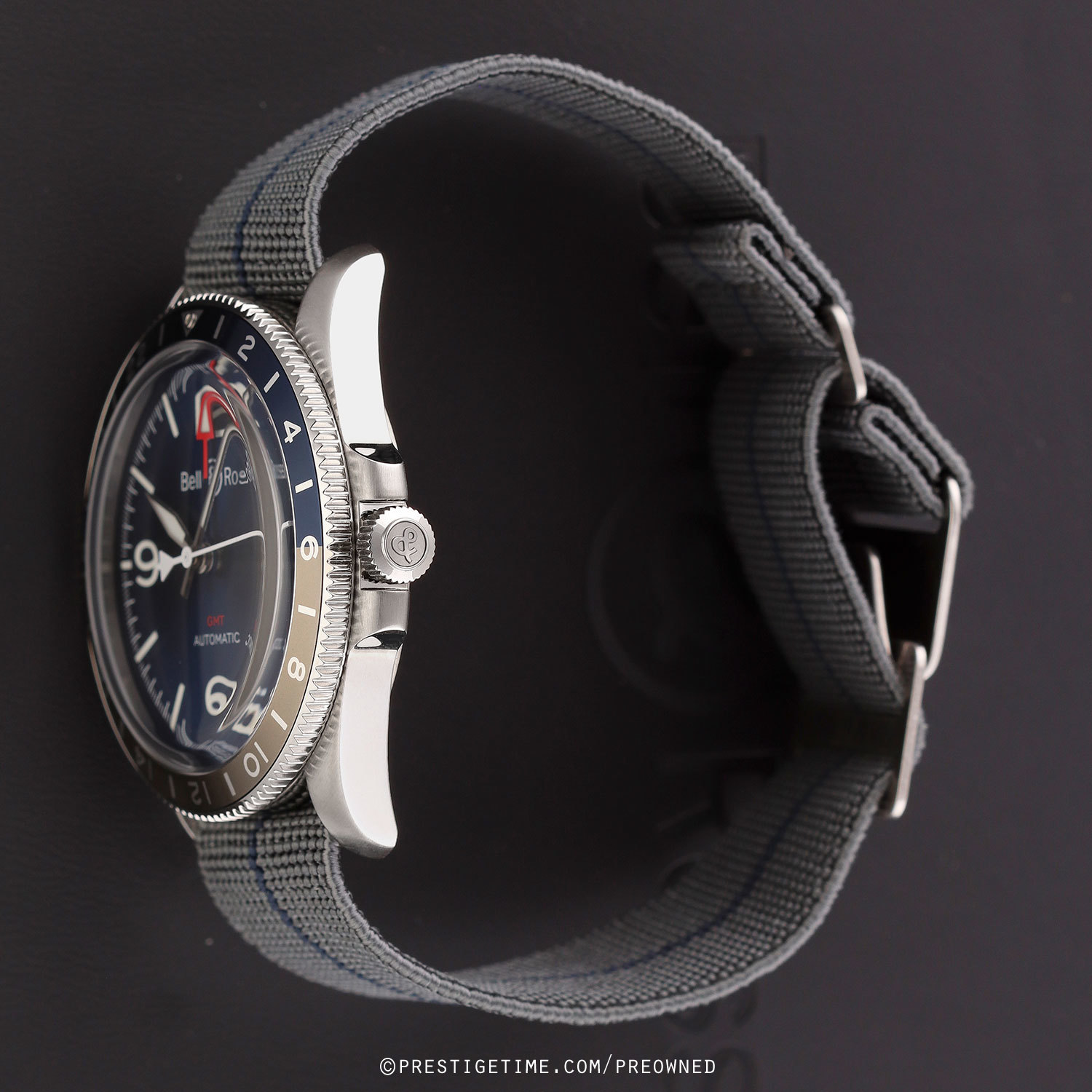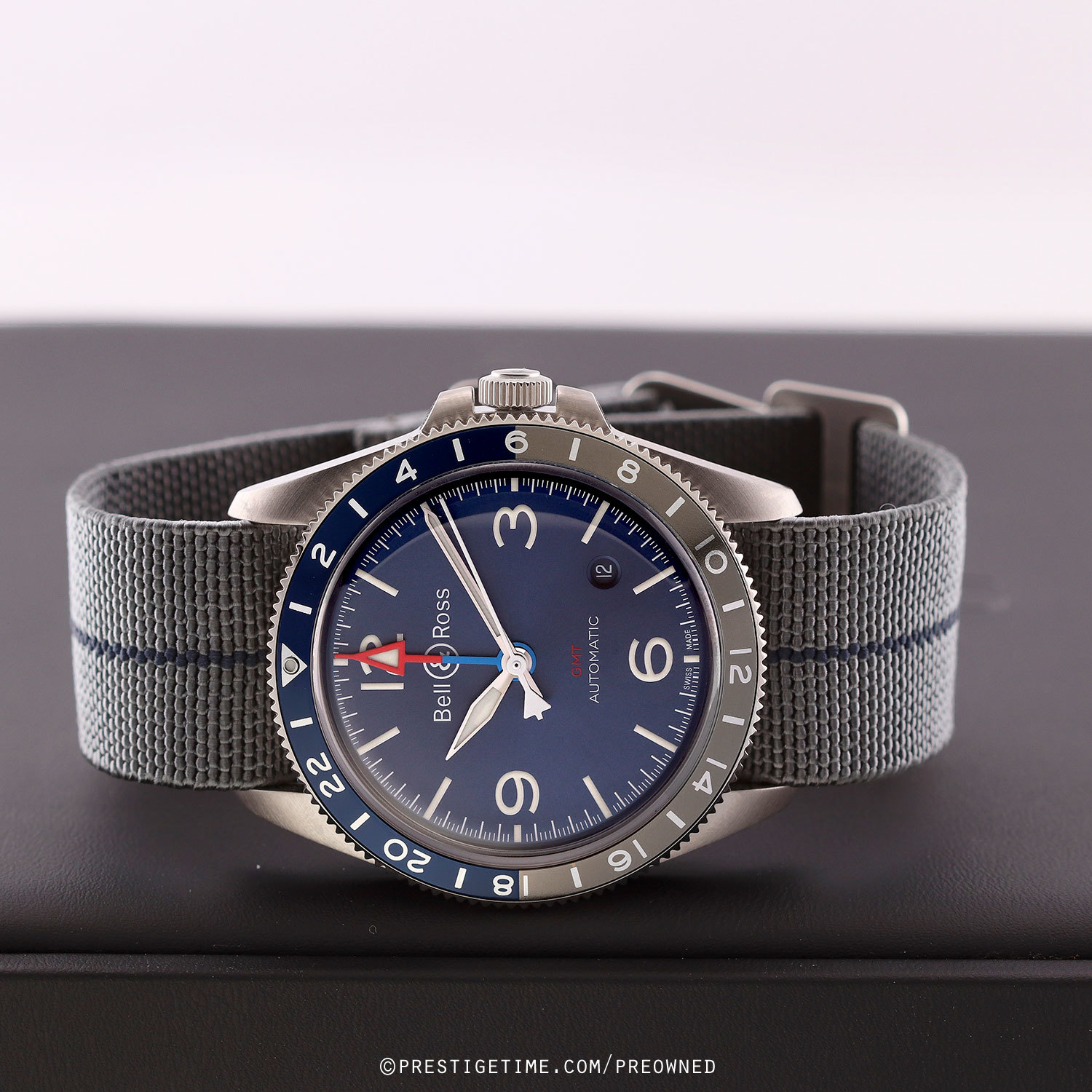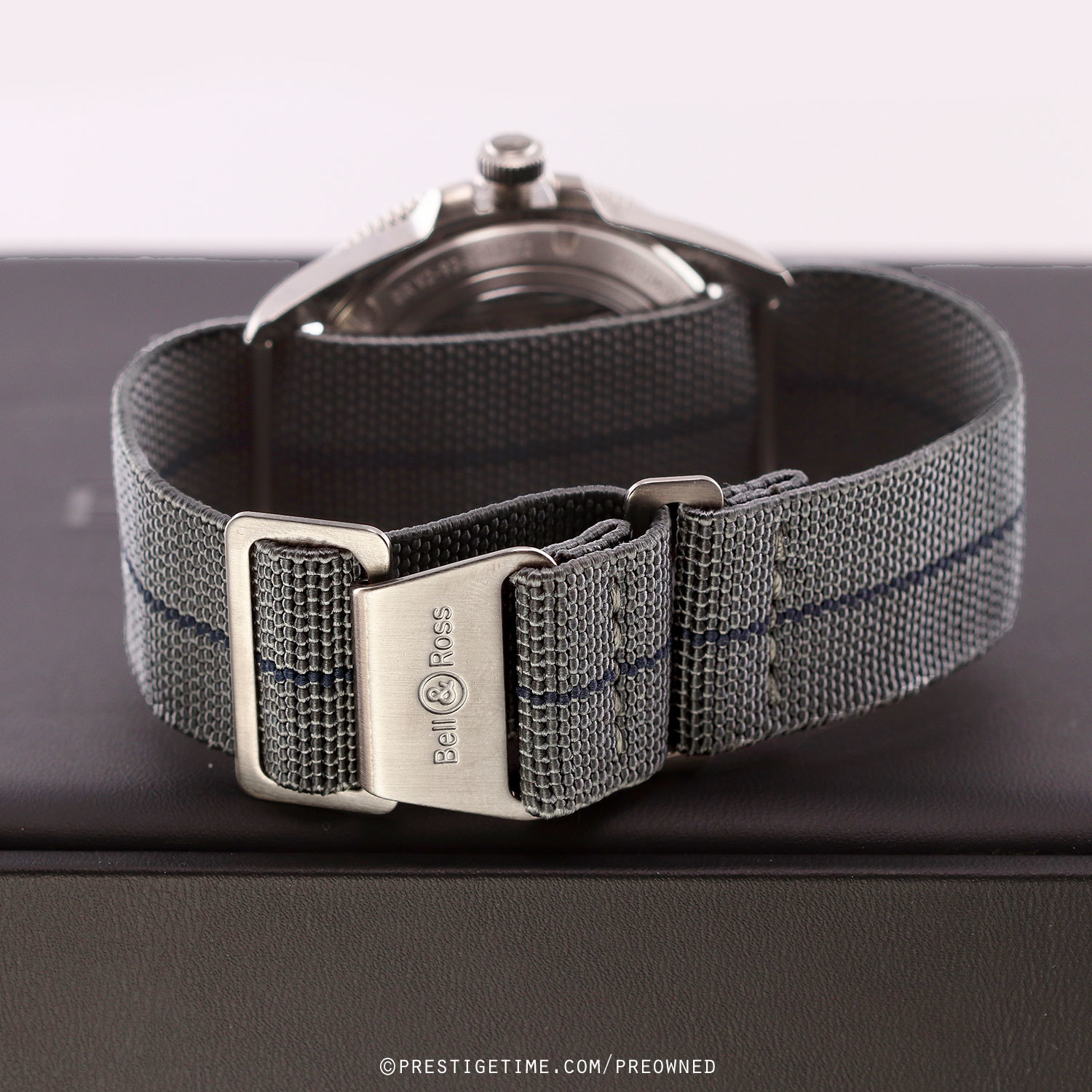 Strap: Fitted on its original Bell & Ross elastic fabric strap. The strap is grey with a blue stripe & features stainless steel hook & loop style buckle. The strap is unworn, in new condition with its full wear lifespan remaining.