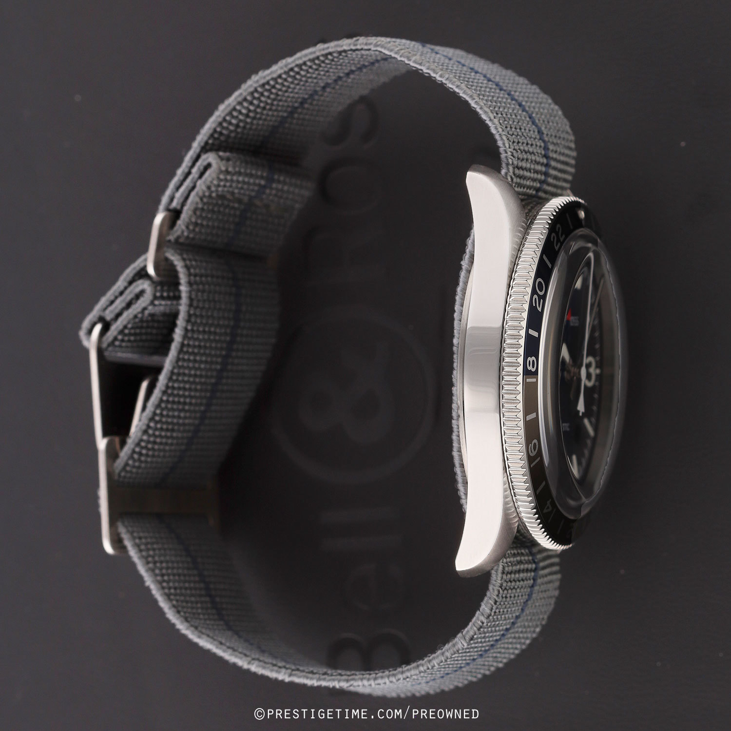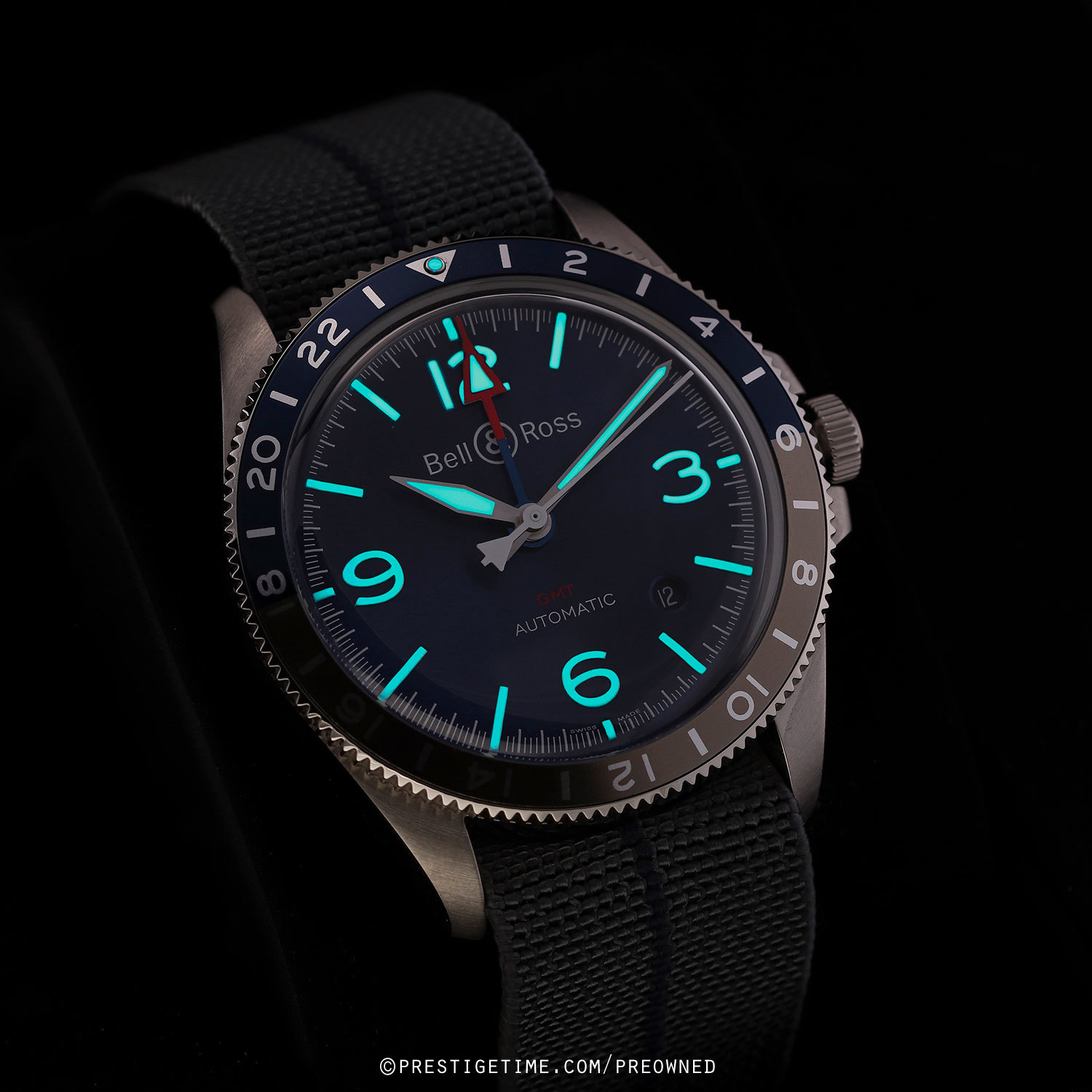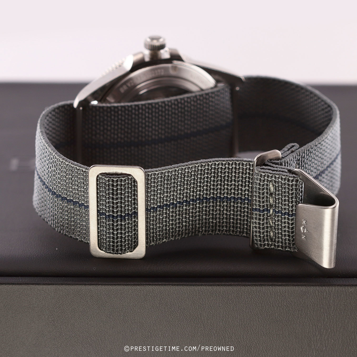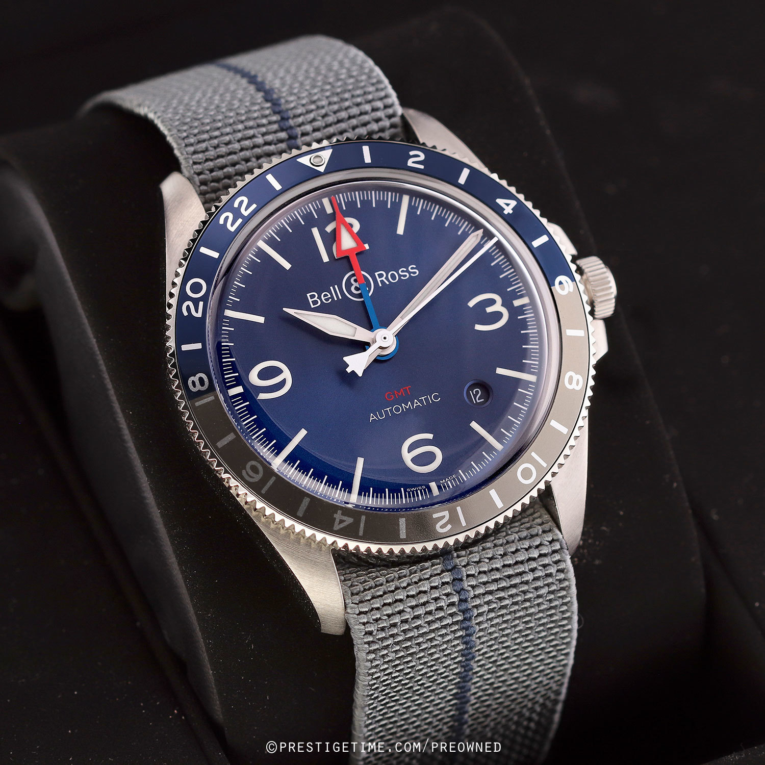 Strap: Fitted on its original Bell & Ross elastic fabric strap. The strap is grey with a blue stripe & features stainless steel hook & loop style buckle. The strap is unworn, in new condition with its full wear lifespan remaining.