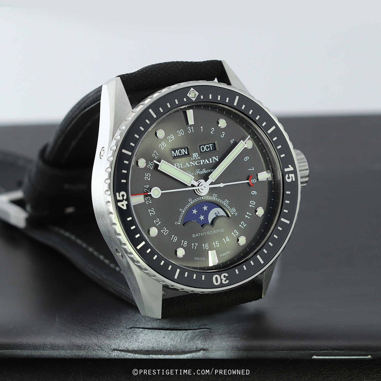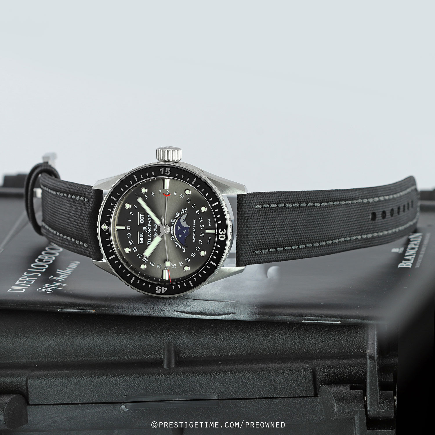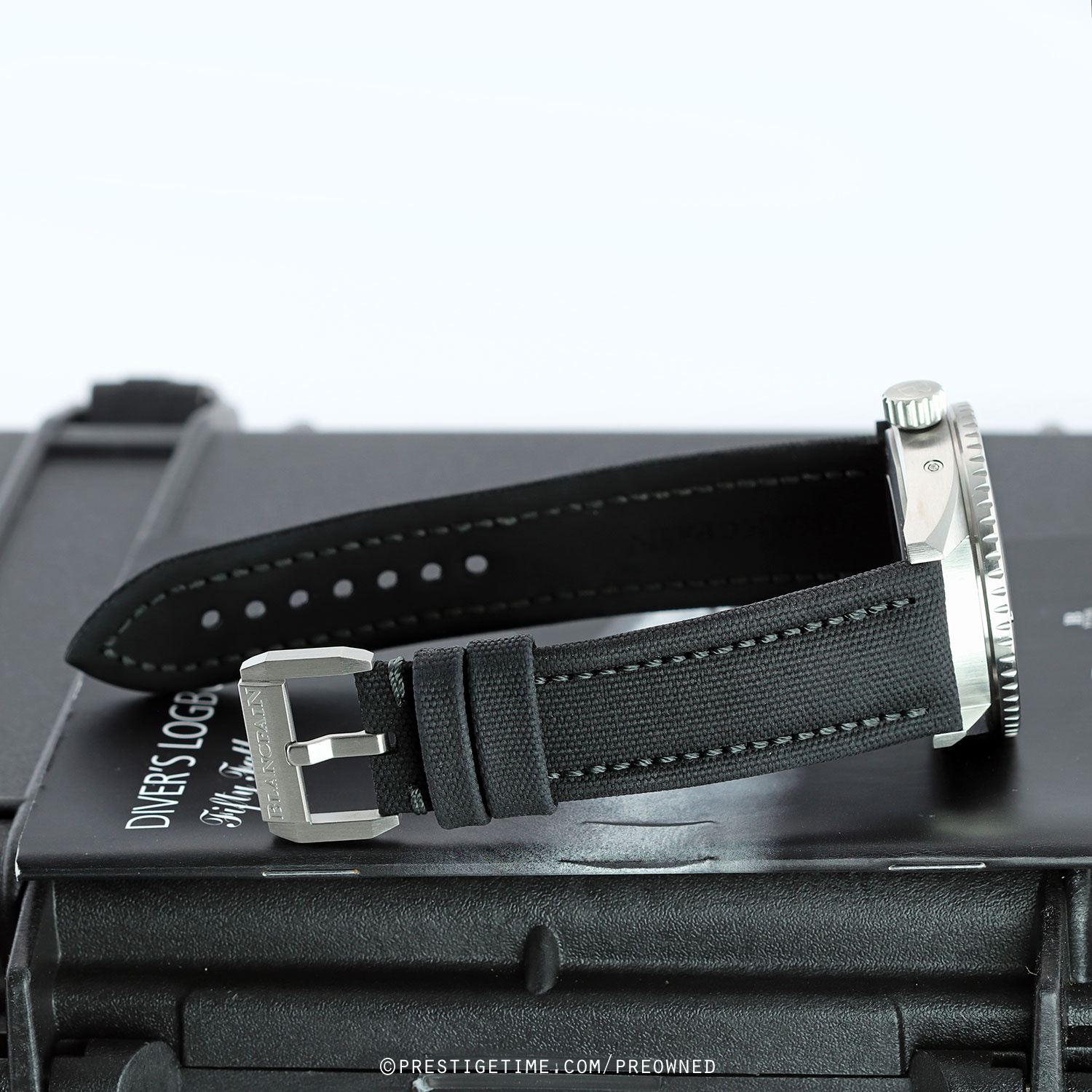 Strap: Fitted on its original Blancpain black sailcloth fabric with a stainless steel tang buckle. The strap is in excellent near new condition with the majority of its wear lifespan remaining. We would rate the strap as 97%+ condition.