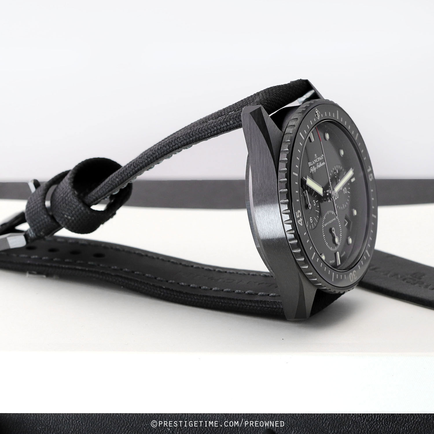 Strap: Fitted on a brand new & unworn OEM Blancpain black sailcloth canvas strap with a black ceramic tang buckle. The strap is new & crisp with its full wear lifespan remaining.