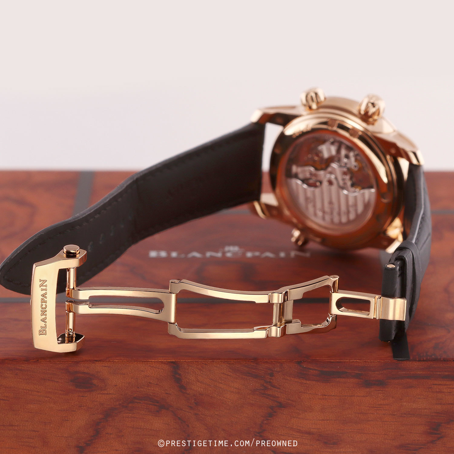 Strap: Fitted on its original Blancpain matte black alligator leather strap with a stainless steel deployant buckle. The strap is unworn in new condition with its full wear lifespan remaining.