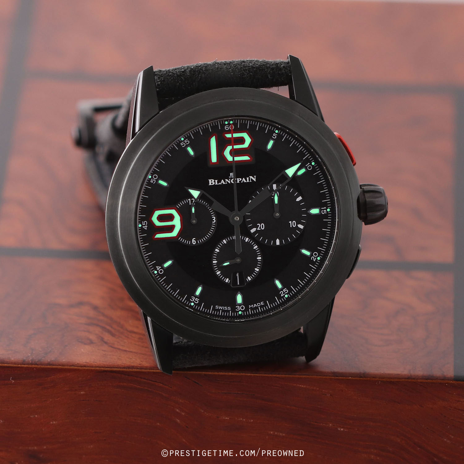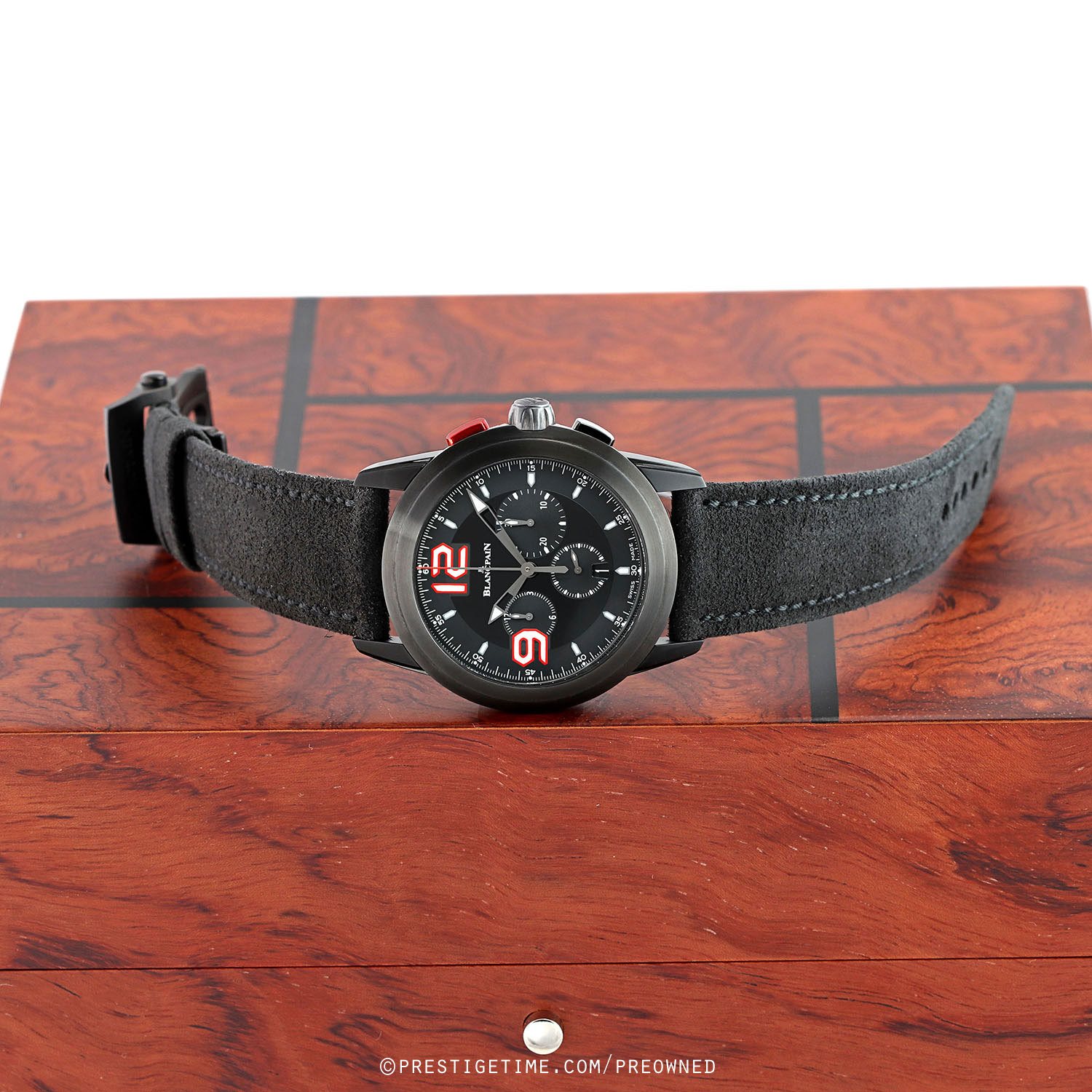 Condition: This watch is considered N.O.S. New Old Stock. It is unworn in new condition. We would be comfortable rating this watch in an 99%+ overall condition. Delivered in an original Blancpain parquet wood box with all papers. The warranty has been dated 12/2022 & is valid until 11/2024.