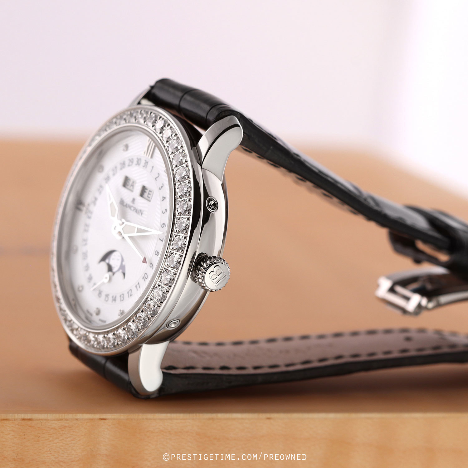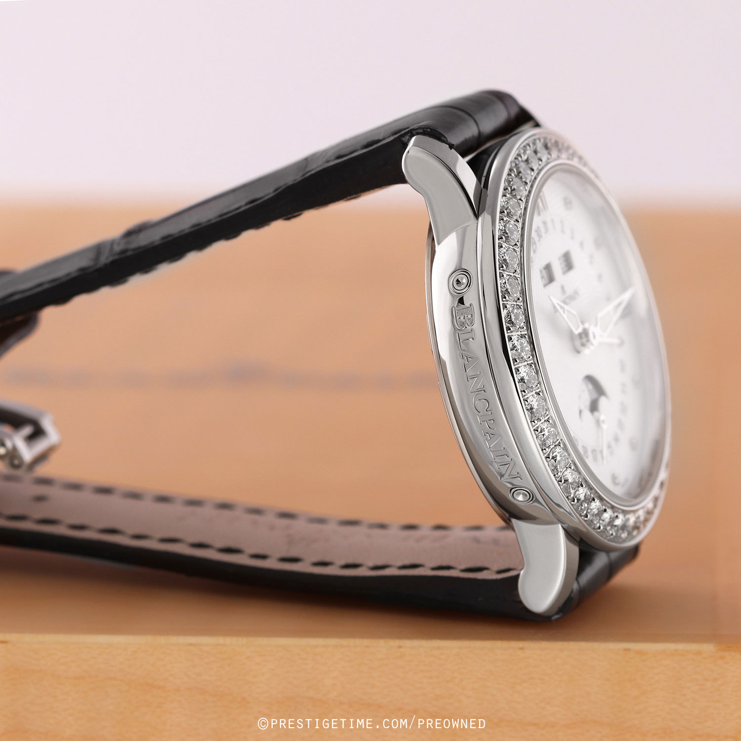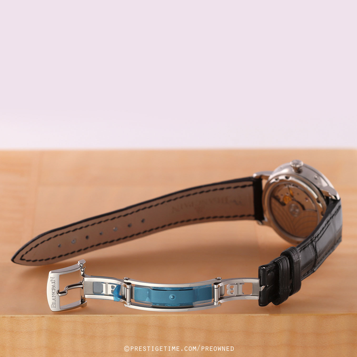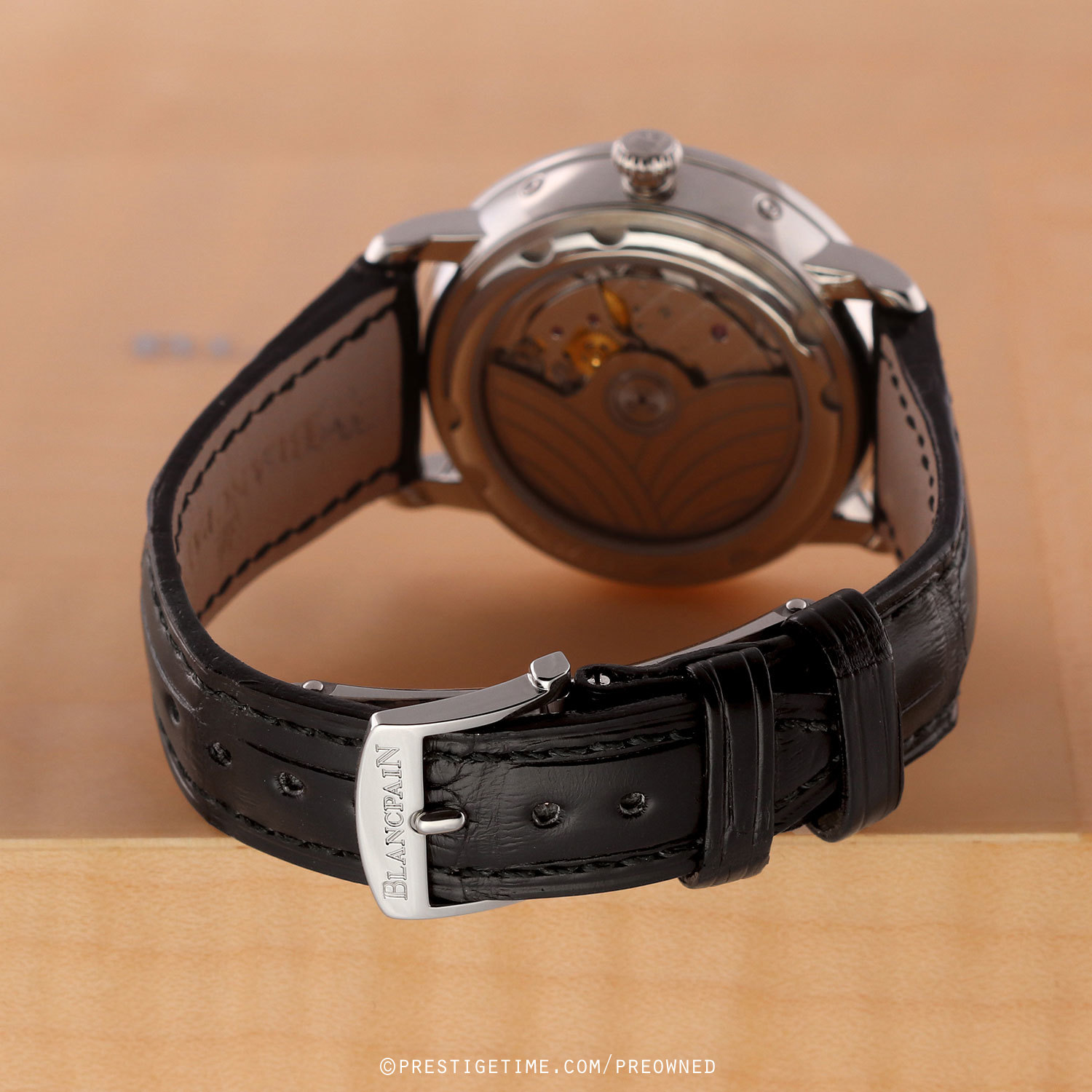 - Fitted on a Blancpain original black alligator leather strap with a stainless steel deployant buckle. The strap is in unworn, however it does have some super light shop-wear. We would grae the strap in 99% overall condition and with its full wear lifespan remaining.