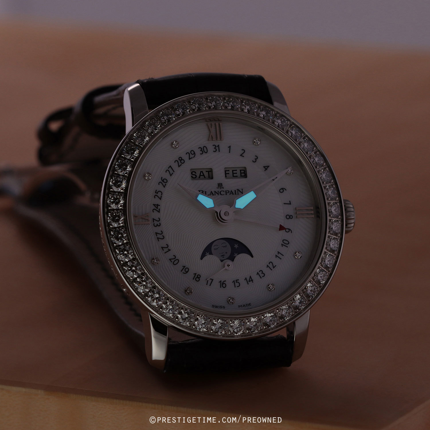 - Moonphase aperture at the bottom of the dial.