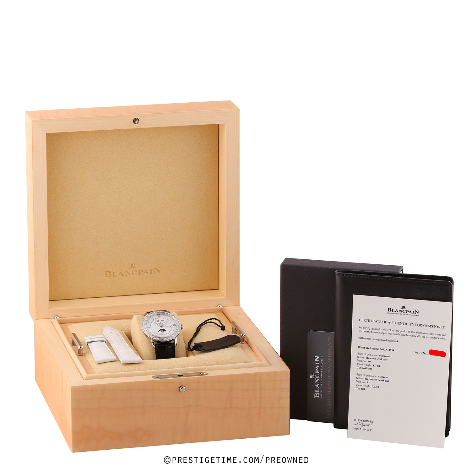 - Delivered with an additional Blancpain original white alligator leather strap. The strap is in brand new, crisp & unworn condition with its full wear lifespan remaining.