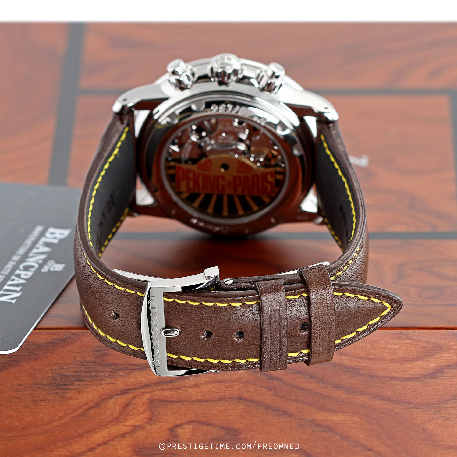 Strap: Fitted on an original, model specific, Blancpain brown calfskin leather strap with yellow stitching & a stainless steel deployant buckle. The strap is brand new & in unworn condition with its full wear lifespan remaining.