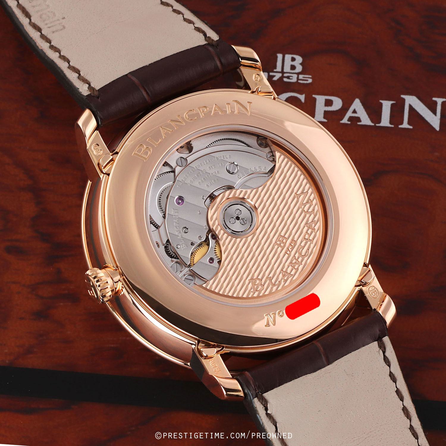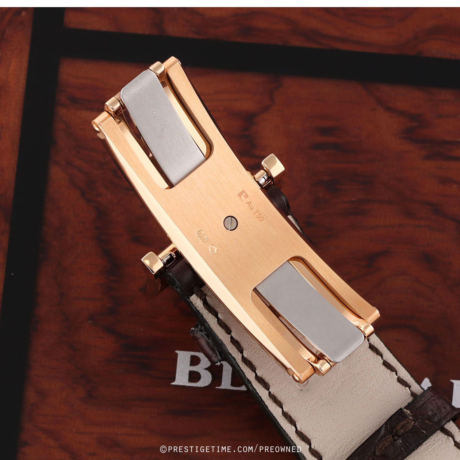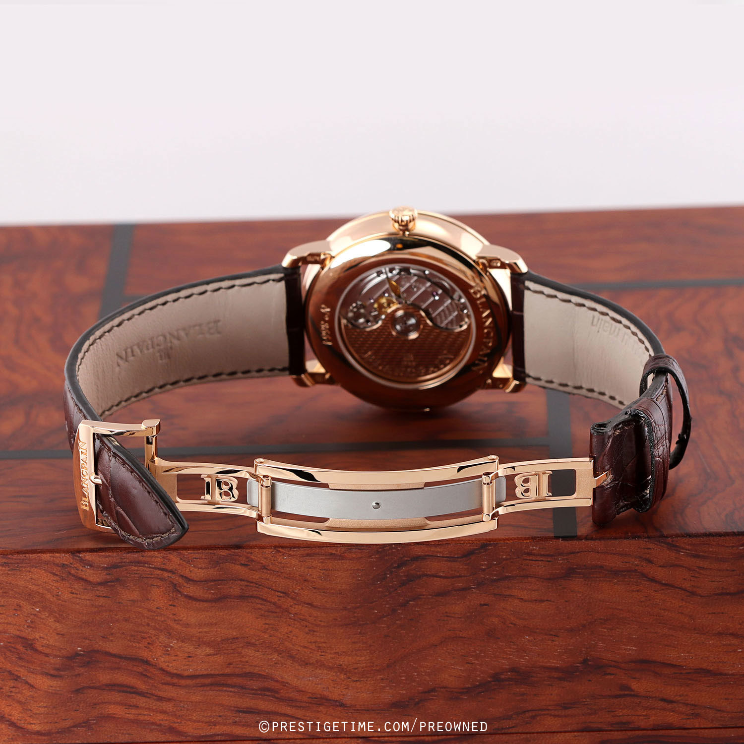Strap: Fitted on its original Blancpain brown alligator leather strap with a solid 18kt rose gold deployant buckle. The strap is in excellent, near new condition with the majority of it wear lifespan remaining. We would be comfortable rating the strap as in 95%+ condition.
