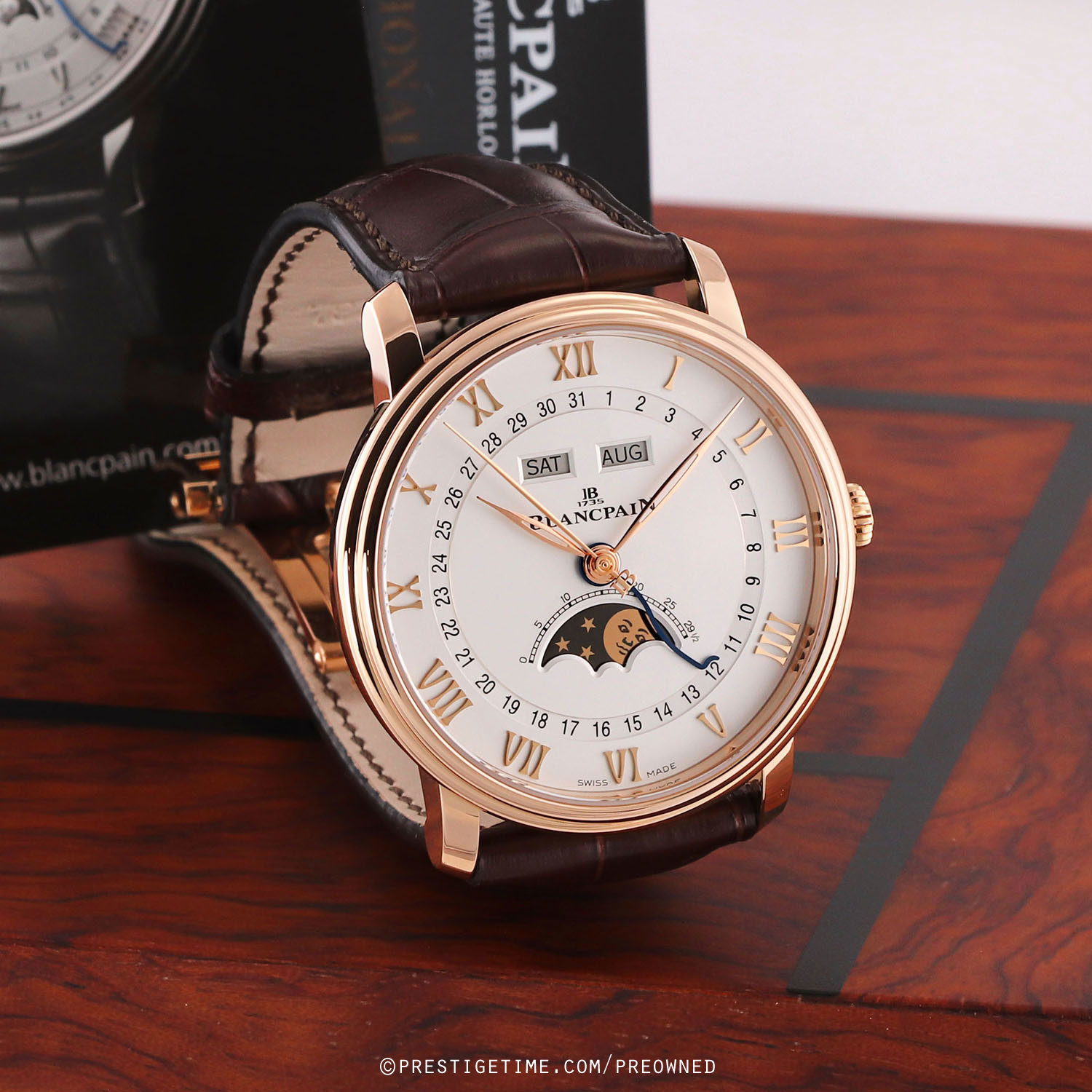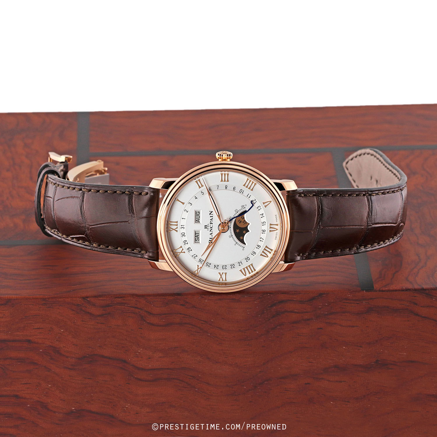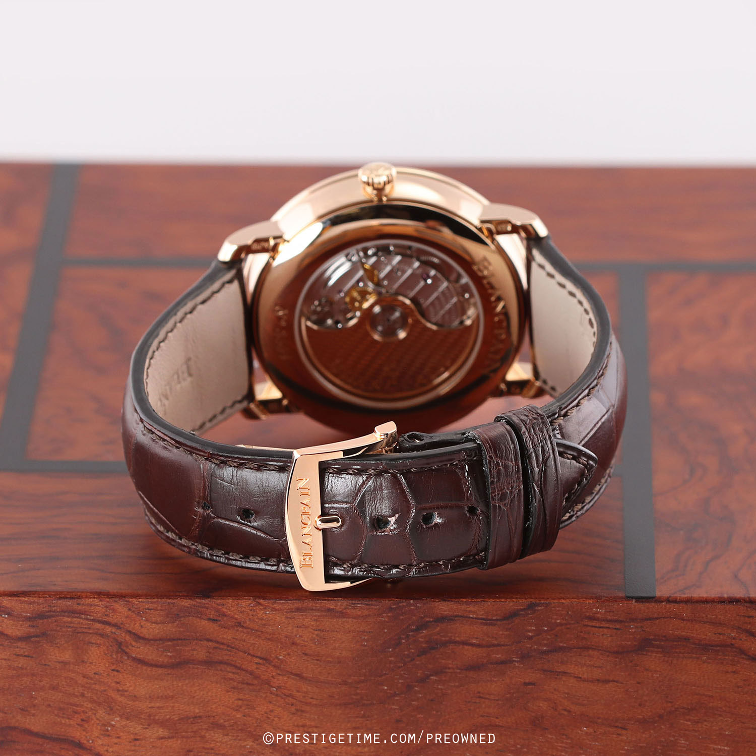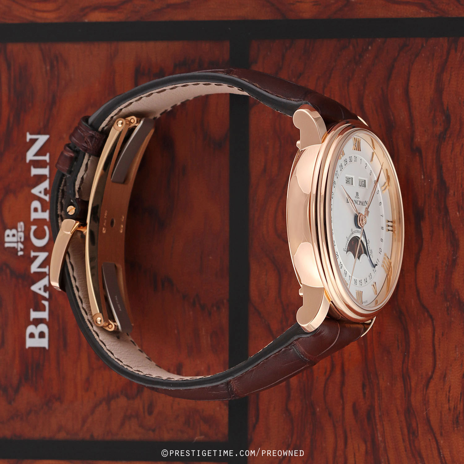 Strap: Fitted on its original Blancpain brown alligator leather strap with a solid 18kt rose gold deployant buckle. The strap is in excellent, near new condition with the majority of it wear lifespan remaining. We would be comfortable rating the strap as in 95%+ condition.