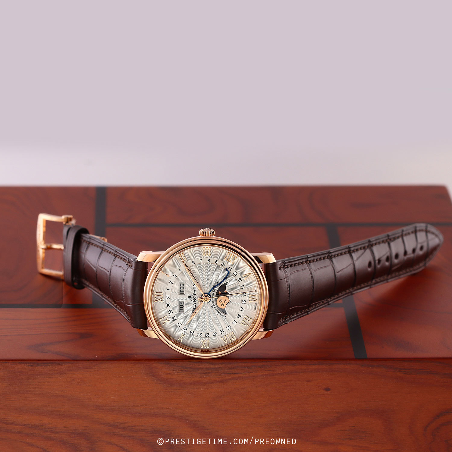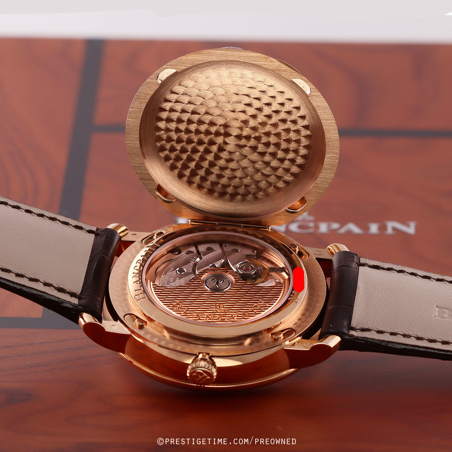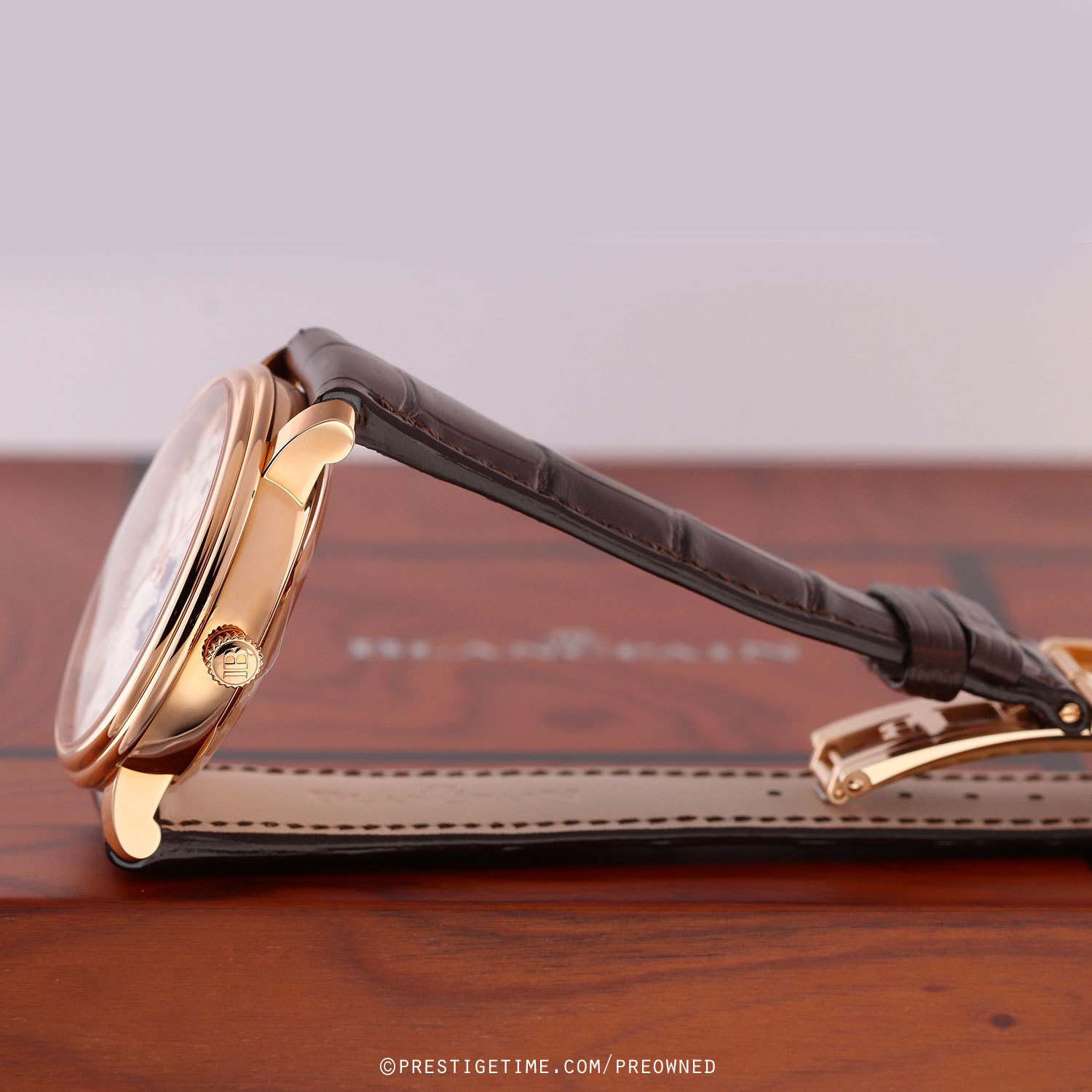 Strap: Fitted with its original Blancpain brown alligator leather strap with a solid 18kt rose gold deployant buckle. The strap is brand new, crisp & unworn, with its full wear lifespan remaining.